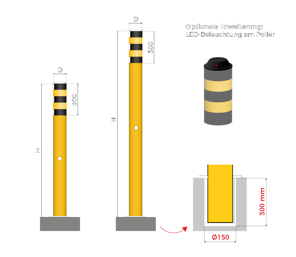 Signalpoller sind spezialisierte Sicherheitselemente, die zur Warnung und Abgrenzung gefährlicher oder eingeschränkter Bereiche in Ihrem Betrieb entwickelt wurden. Diese Pfosten dienen hauptsächlich als visuelle Warnung und zur Lenkung von Personen- und Fahrzeugbewegungen in kritischen Bereichen.